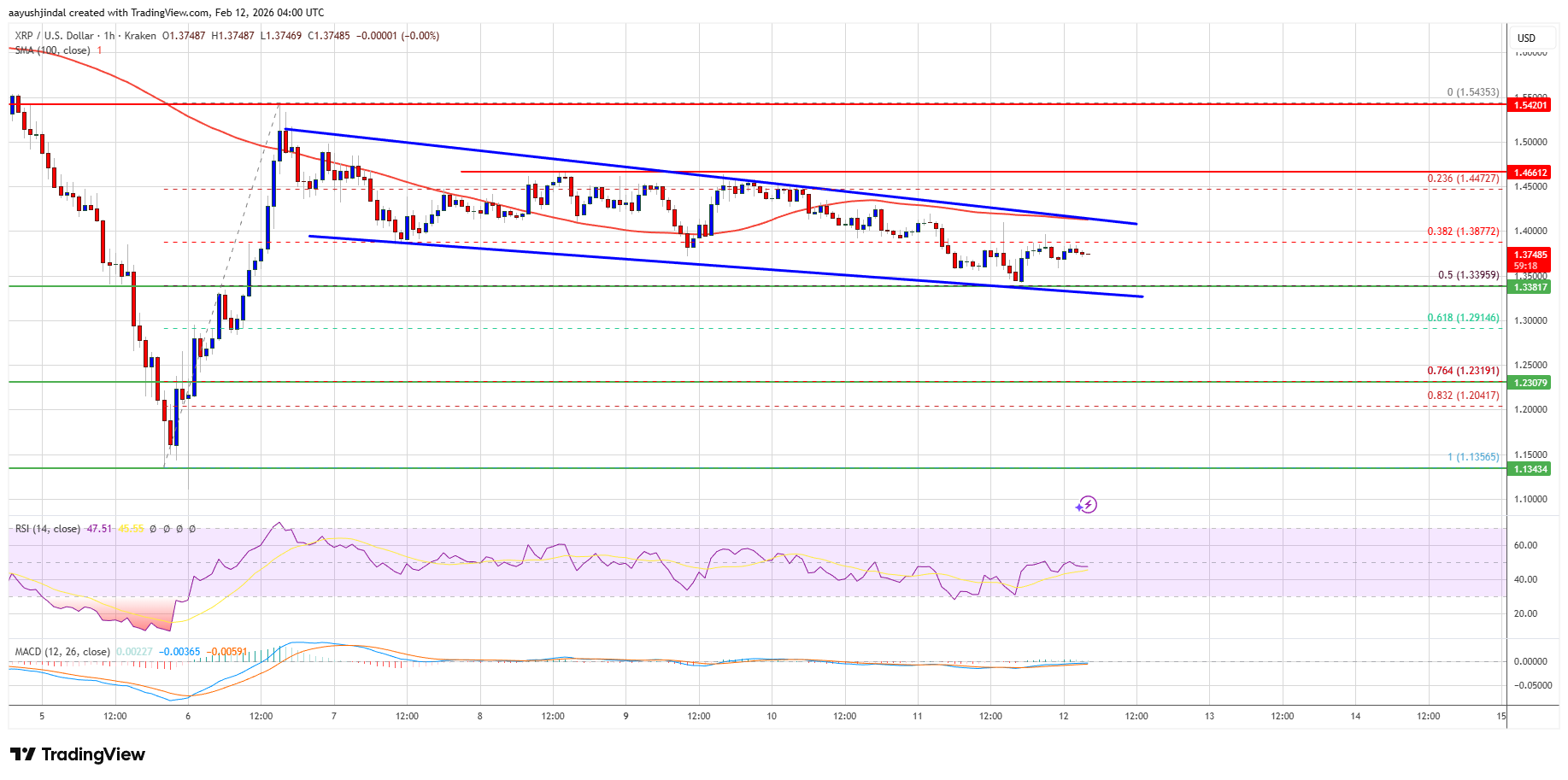 Hourly RSI (Relative Strength Index) – The RSI for XRP/USD is now below the 50 level.